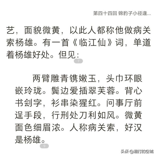 所以病关索在我看来是对杨雄外貌、勇猛的一个概括。