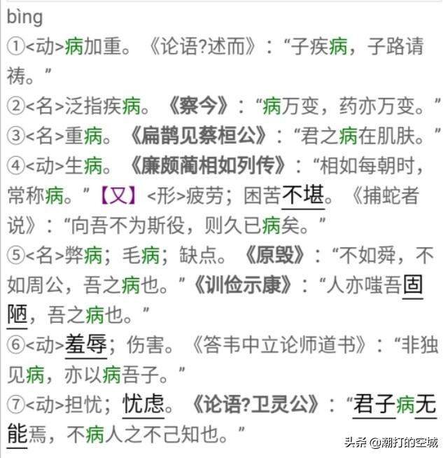 今天看到很多人解释说“病”字不是疾病、病怏怏,而是比得上、并驾齐驱的意思。虽然这样解释也能行得通,但我在字典里并没有发现这个用法,也没有发现“病”通“并”的说法,基本都是贬义。(也可能我没找到)