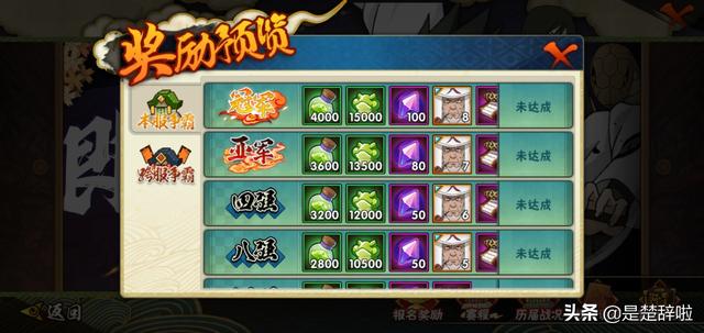 3、猿飞日斩通过组织争霸赛的本服争霸或者跨服争霸,(本服争霸冠军:八片 亚军:七片 四强:六片 八强:五片)(跨服争霸冠军:二十片 亚军:十五片 四强:十片 八强:八片 十六强:六片)