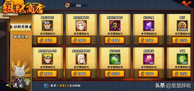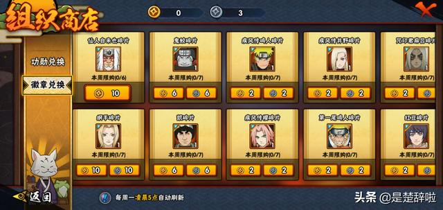 2、纲手通过组织商店的徽章兑换,利用银徽章