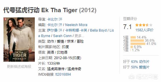 这部影片被称为印度版的007,男主演是印度著名的“三大汗”之一的萨尔曼•汗,女主演是曾被评为全球最性感女人之一的卡特莉娜·卡芙!剧情打斗也非常好看,豆瓣评分高达7.1分!