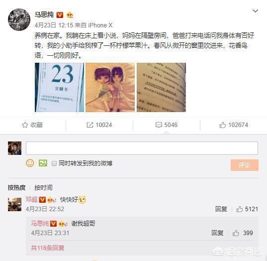 但是大家看看当时马思纯生病时发的微博 ↓