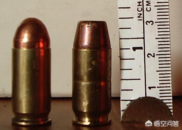 注意,这里说的9mm手枪弹指的是.38柯尔特长弹,而不是现在常见的的9mm巴拉贝鲁姆手枪弹。现代的9mm巴拉贝鲁姆手枪弹的动能与.45ACP手枪弹相仿,在性能上还略胜一筹。在1979年美军第一轮XM9竞选的时候,美军曾对9mm Para手枪弹与.45ACP做了对比,结论是两者的威力相差无几。
