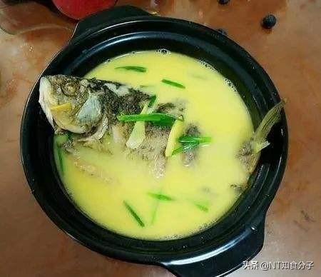奶白的鲫鱼汤,上面来点金黄色的菜籽油,显得彩色非常饱满,也非常有食欲。