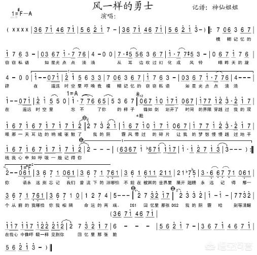 (1)一次在商场购物的时候,商城居然响起了这首《风一样的勇士》,老婆问我知道这是什么音乐,旋律听起来好舒服,我喋喋不休的给她讲了这首曲目的来历:《风一样的勇士》是地下城与勇士的主题曲,由韩国歌手崔现雅演唱,是DNF玩家们最喜欢的歌曲!我们来看看这首歌曲的简谱,你会唱吗?