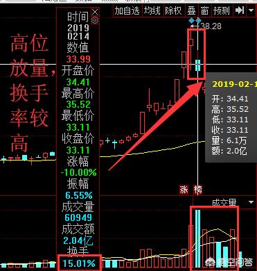 股价经过一波上涨后,处于一个相对高位,此时这个位置的成交量明显放大,换手率在10%以上,这是庄家出货的概率偏大。