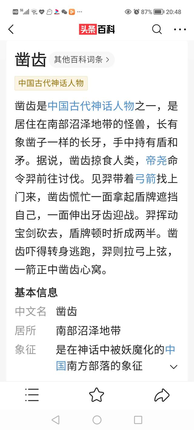 凿齿是我国远古时被妖魔化的南方部落的象征。是个神话人物。