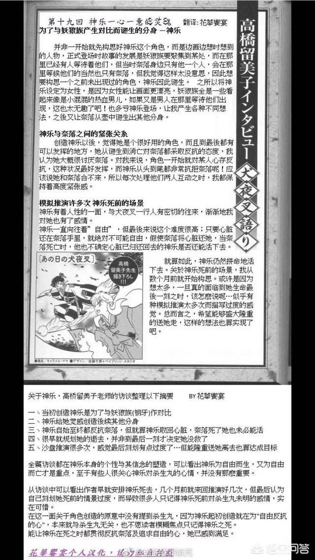 更应该说,在我心中,神乐的死一来是对这个反派角色一个灵魂的升华,用生命去换自由的决裂和勇气;二来是推进了杀生丸的心灵洗礼。