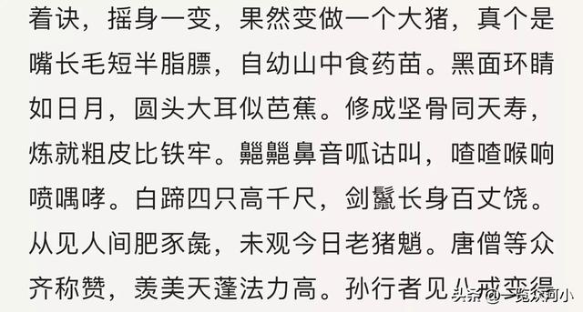 说到这里贴下原著第85回:“巨口獠牙神力大,玉皇升我天蓬帅…………一嘴拱倒斗牛官,吃了王母灵芝菜。玉皇亲打二千捶,把吾贬下三天界…………铁脚天蓬本姓猪,法名改作猪八戒。”