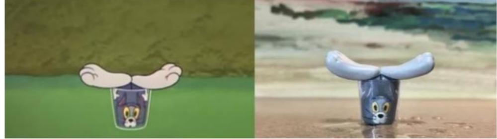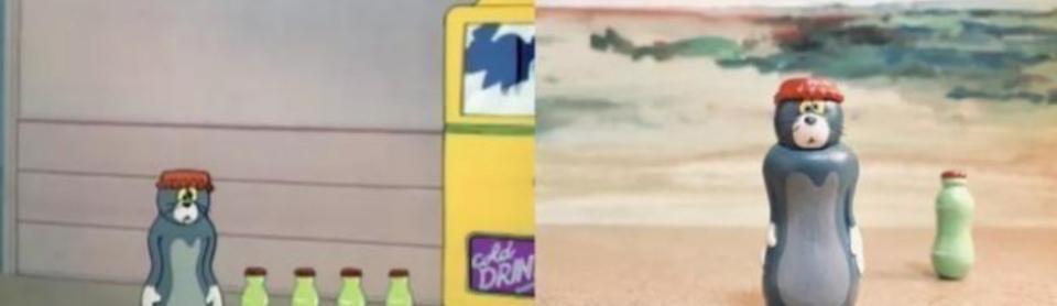 9.假装成汽水瓶的汤姆,头顶的瓶盖以及动画中它身旁的饮料瓶也都被还原了出来。