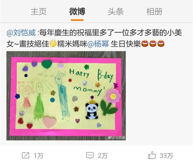 一早刘恺威在微博晒出女儿送给妈妈画的一幅画,配文:“每年庆生的祝福里多了一位多才多艺的小美女~画技绝佳。生日快乐!