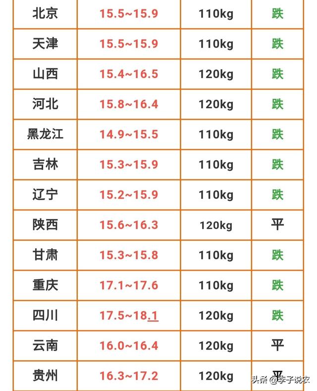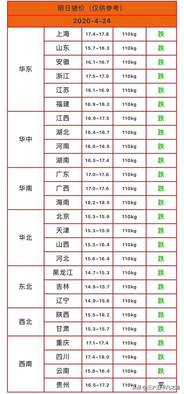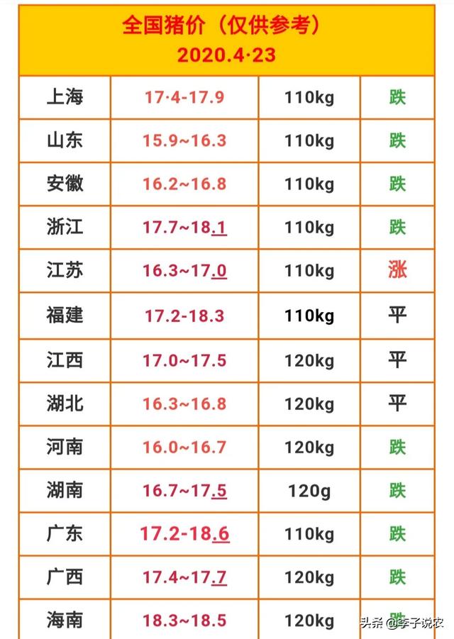从表中可以看出跌幅最大的应该是广东,前几天还是高价超过19元一斤,看看今天的是在17.6 元一斤,这样已经下跌了一元多了。从全国来看,如今没有进入19元一斤的价格,就是在18元价位的也只有福建、海南、四川三省,猪价这次下跌是来真的了。