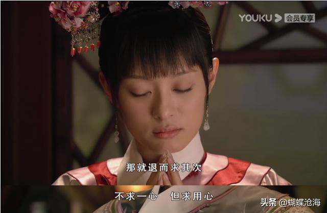 进宫以后,甄嬛在避宠的时候,与皇帝在杏花微雨中相知相识。然而皇帝却拥有三宫六院,而她的愿望却是“愿得一心人,白首不相离”。于是她就只能退而求其次,不求一心,但求用心。