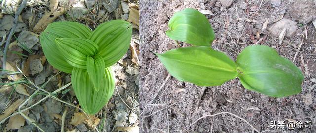藜芦与茖葱在幼苗期很容易被人认错,其实只要找对了方法,二者区别相当明显左边是藜芦,右边是茖葱。藜芦是百合科(藜芦科)的,页面褶皱有沟;而茖葱则相对光滑。