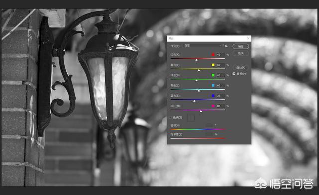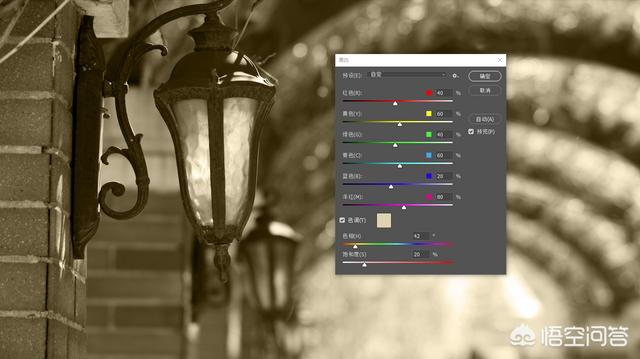 继续使用上面用过的图片,选择(图像-调整-黑白)的“去色”功能,调整一张怀旧复古风格效果,选择(图像-调整-黑白)弹出菜单,点击(确定)就是一张“去色”后的黑白照片▼