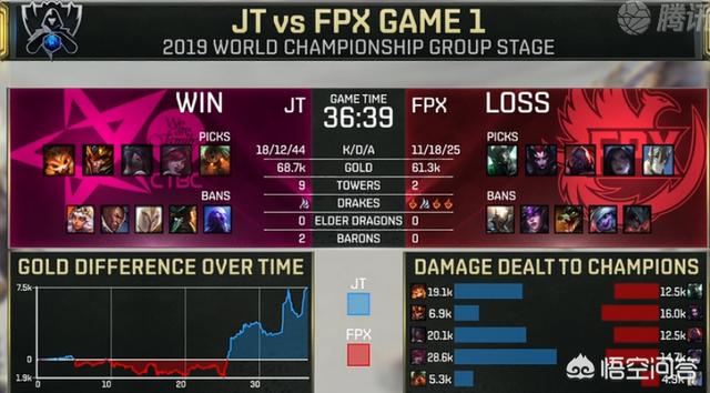 赛后数据中可以看出FPX明显缺乏伤害。