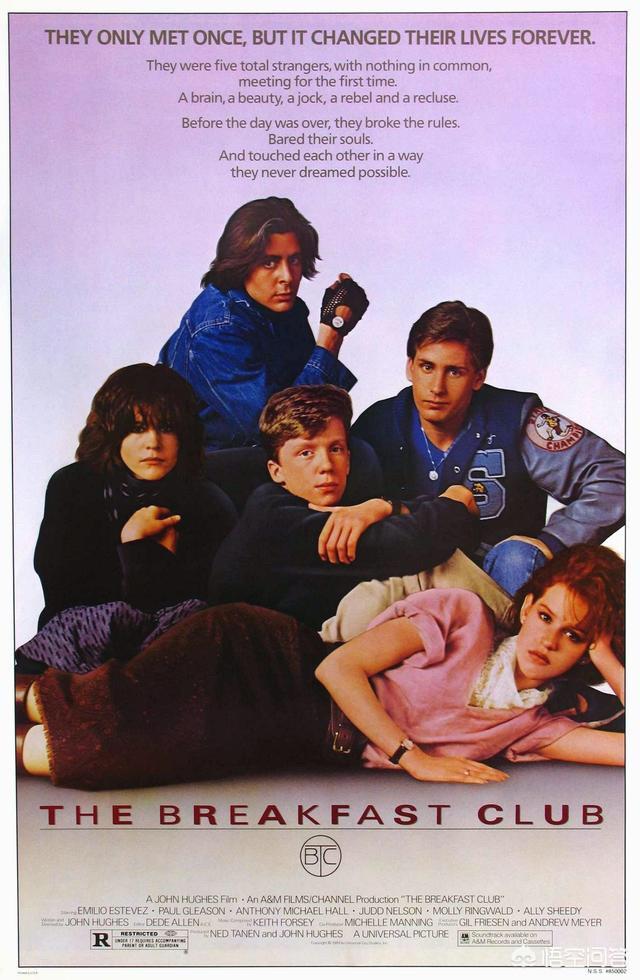 1985年上映的《早餐俱乐部》是美国青春片经典,由约翰·休斯(《小鬼当家》编剧、制片人)导演。主要情节发生在一个星期六的中学图书馆内,描写五位个性反叛的男女同学,在假期被罚留校温习功课。五人的家庭背景和性格各异,但在他们诚恳交谈之后,逐渐放开了彼此的戒心和敌意,变成心意相通的好友。