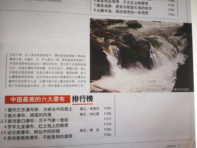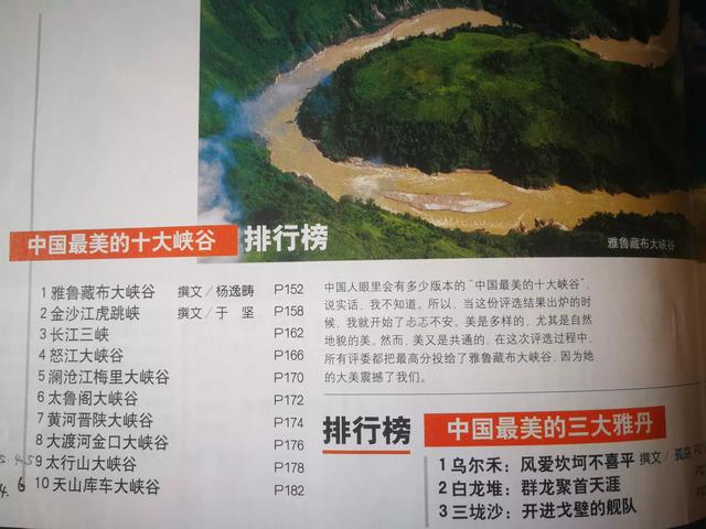 我手头正好有本《中国国家地理》,里面把中国的雪山,峡谷,瀑布,冰川,丹霞,草原,洞穴……作了个排名!