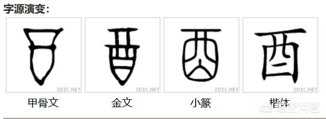 我们看“醍醐”这两个字,是“酉”字旁的,“酉”字是什么意思呢?是“酒”的意思。下面是“酉”从甲骨文到楷书的演变,其实一直都是一个酒坛的形象: