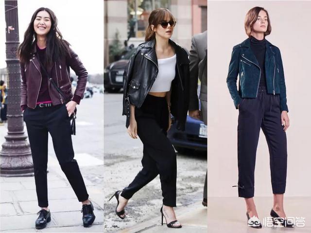 搭配皮衣的话就比较机车风啦,帅气十足,带出了锥子裤的另外一面,撞出了另外一种风格,但是非常酷帅,喜欢这种风格的MM可以学习起来。