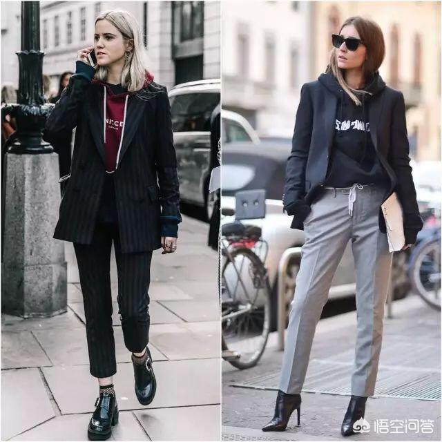不想正式的话可以在里面搭配卫衣,外面穿宽松点的西装外套就好啦,下面搭配靴子或者平底鞋都是完全OK的。