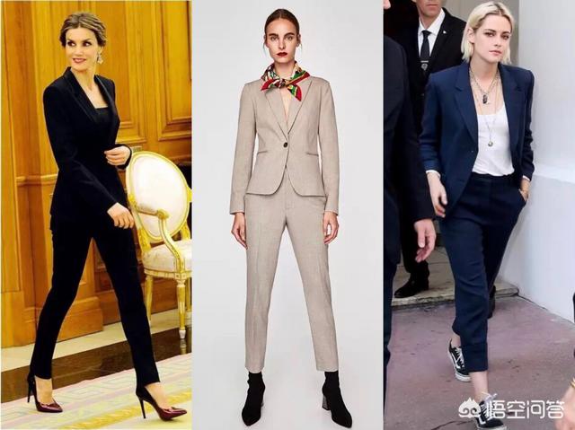 这样穿就比较职场比较OL了,穿出来都是成套的效果,风格转变的话可以在鞋子上下功夫,穿高跟鞋自然比较女人味,穿短靴就比较复古,穿板鞋就是休闲商务风咯。