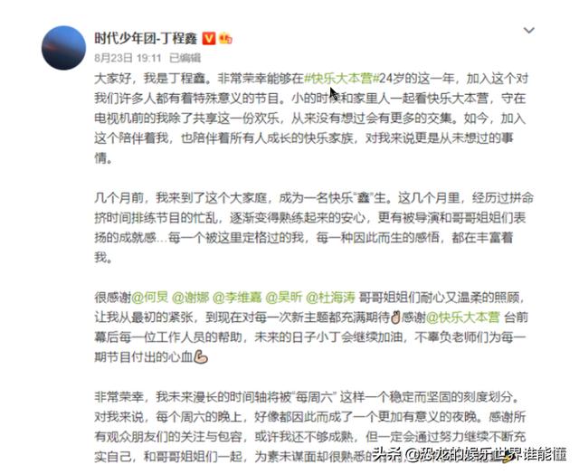 现在的节目大多都会有年纪比较小的成员,这样可能会有不一样的化学反应。所以,《快乐大本营》选择了丁程鑫,应该算是一个双赢的局面吧。