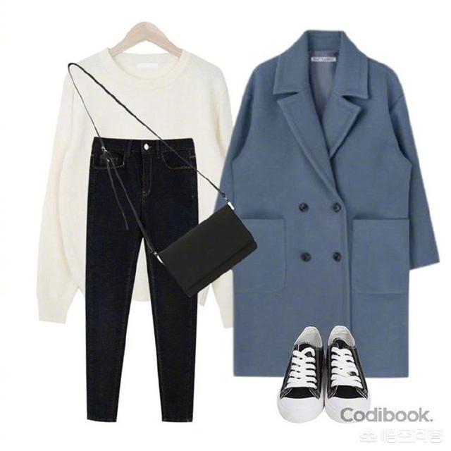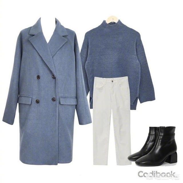 白色针织衫应该是我们衣柜中必备的百搭单品,再搭配一件雾霾蓝大衣是非常有女人味的。