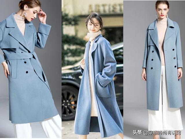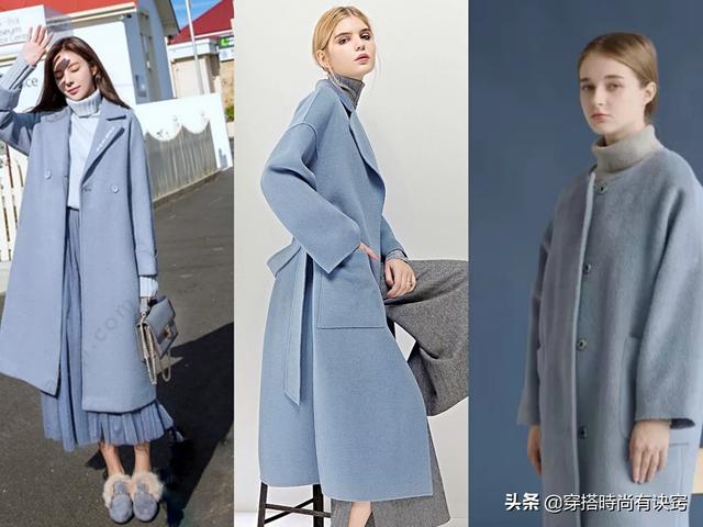 雾霾蓝色是近两年大热的流行颜色,之所以称之为雾霾蓝,是因为在纯正的蓝色里加进了灰的色调,使蓝色变的饱和度更低,也更加低调和内敛。但它的视觉效果是洁净的、静谧的,也是清丽的,很容易与其它颜色配伍。做成大衣它包容性更強,可以与多种颜色的内搭搭配,但比较好看的我认为有以下几种: