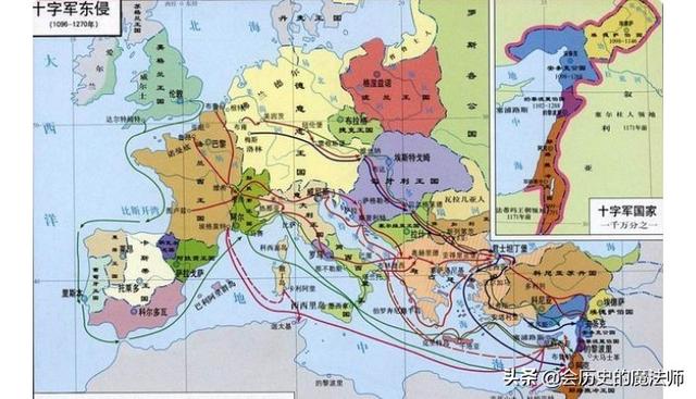 从11世纪起到13世纪,罗马教皇号召西欧的封建领主与骑士组建十字军,前往东地中海沿岸讨伐穆斯林,以恢复基督徒对该地区的统治。在宗教大旗的引导下西欧各地的骑士纷纷东征前后历经9次。