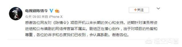 而且饰演蓝忘机的王一博和饰演魏无羡的肖战本身就有巨大的粉丝基础,如果剧组连敷衍都不做,势必会引来巨大的粉丝撕逼。于是剧组发出了一个不痛不痒的声明。