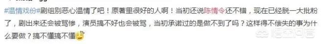 此次引起众怒的是因为温情这个角色在原著中只是个女N号,但是在流露出的剧照中,不难发现她跟两位主角有亲密戏,网友也是笑嘲《陈情令》都变《温情令》了,很多原著粉也都觉得演不成耽美好歹演个兄弟情吧,就怕最后变成为夺女主而相爱相杀的玛丽苏大剧。只能说敢冒着被众多原著粉申讨的风险还能为了捧孟子义而乱改剧情,没有后台谁信。