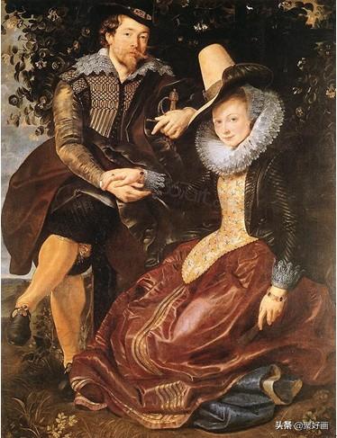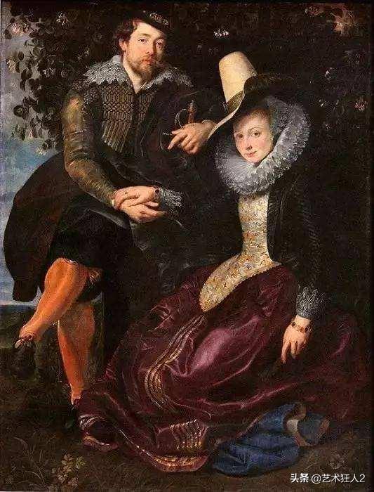 对于鲁本斯画笔下的自己和妻子,是盛装安排,尽显富贵之气,也突出了鲁本斯富豪般的王子般的生活