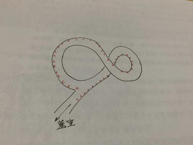 红色为月牙缺口标记,胡八一发现月牙缺口就是让人专注于缺口而陷入不断循环的路径中,当然我的这张图太简单了,小说中胡八一一行用纸笔绘制了五分之二的草图就回到了冥殿中。
